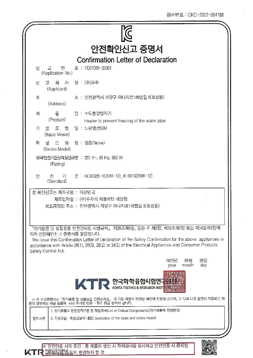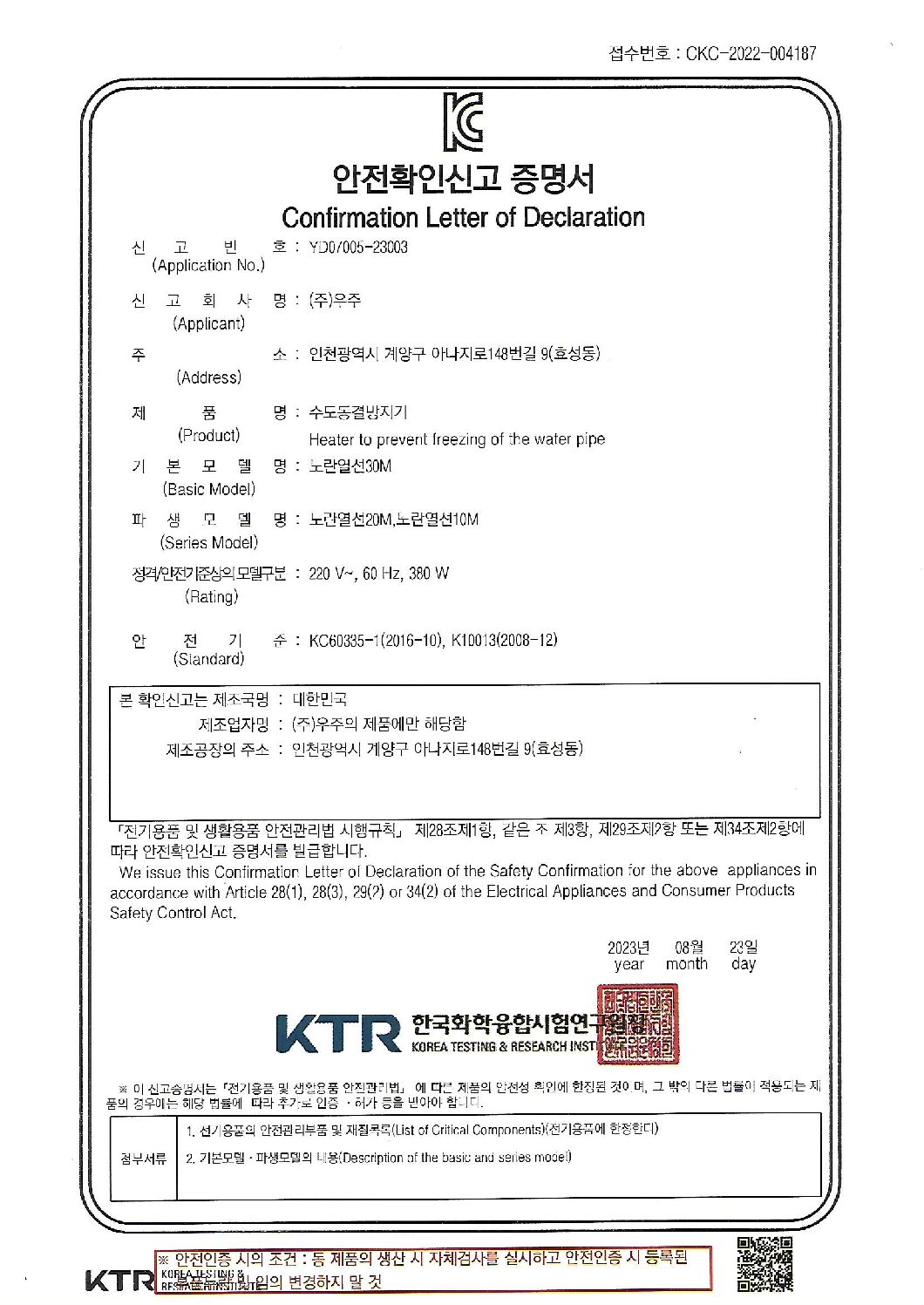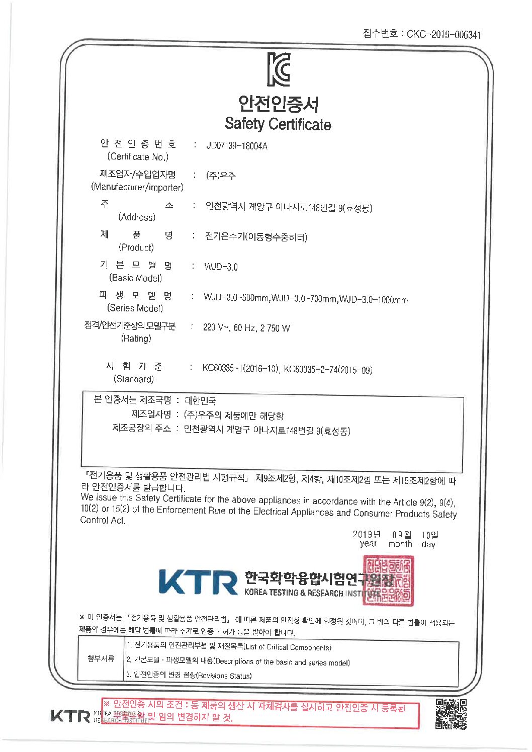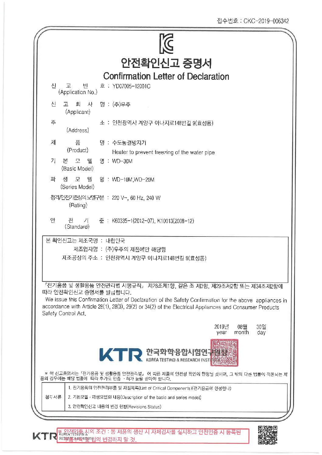 5K 온수히터 안전인증