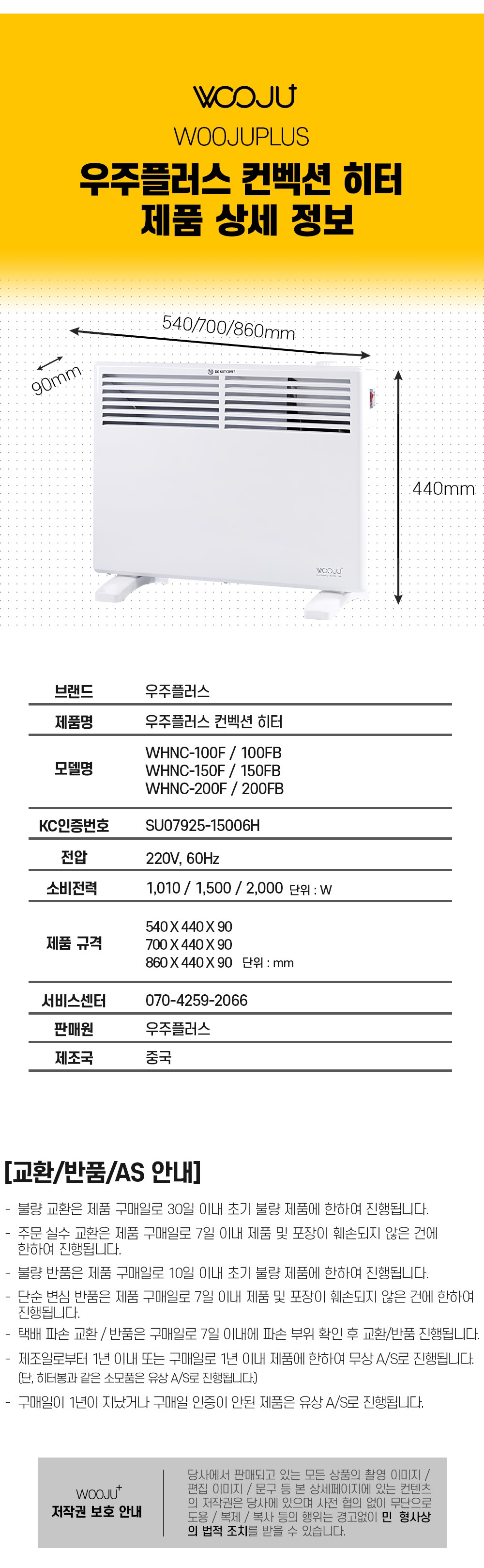 - 컨벡션 히터F 2,000W (화이트,블랙)WHNC-200F/200FB